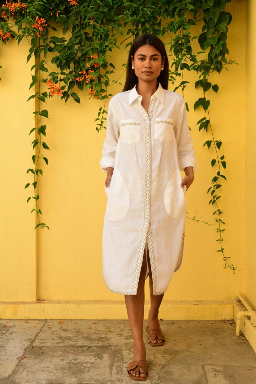 Tags 100% linen, Azure and Indigo, Linen Shirt Dress, Maya Shirt Dress, White Linen Shirt Dress, White Shirt Dress