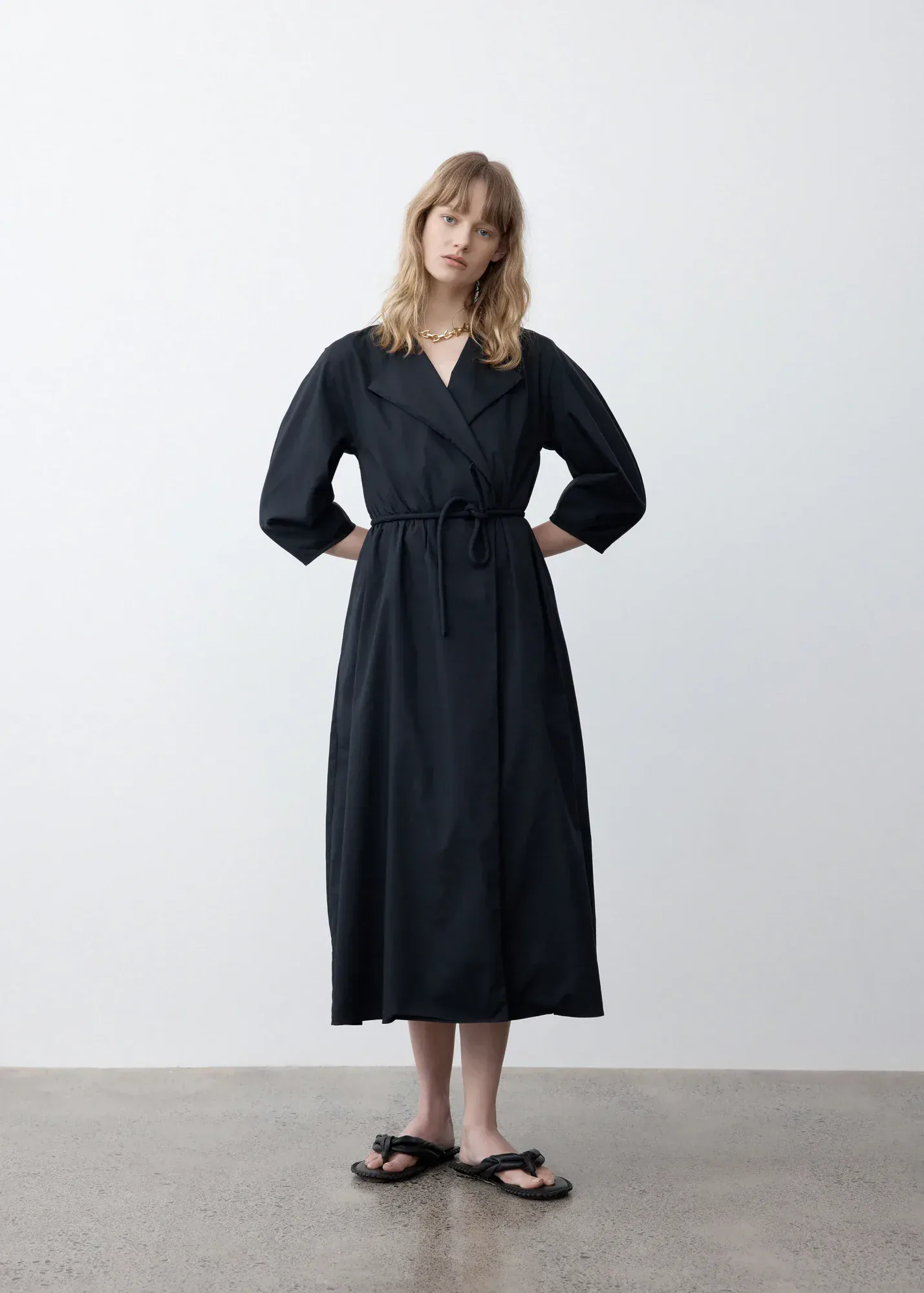 Foemina Harry Dress Navy is a versatile piece, this modern wrap dress is highlighted by its simplistic intention and clean lines. Designed to be worn cinched at the waist using the complementing covered rope belt or left open as a jacket, the lapels can also be worn open or closed for two different looks.
