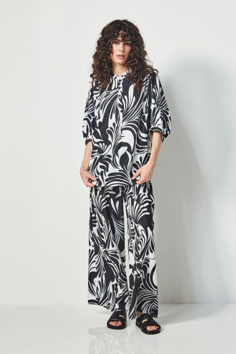The Glide by Verge Baker Pant in Black Print is a soft tumbled satin wide leg, full length pant with side pockets. Style back with the Glide by Verge Rotate Shirt or Clara in Top. The Baker Pant is also available in Midnight, Black, Periwinkle and Blue Print option.