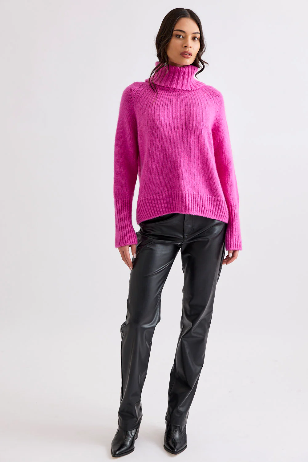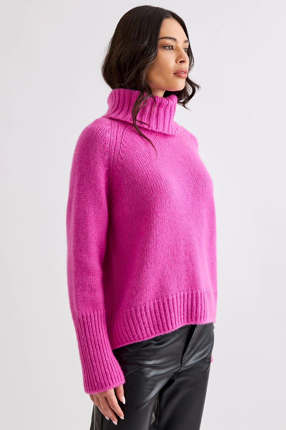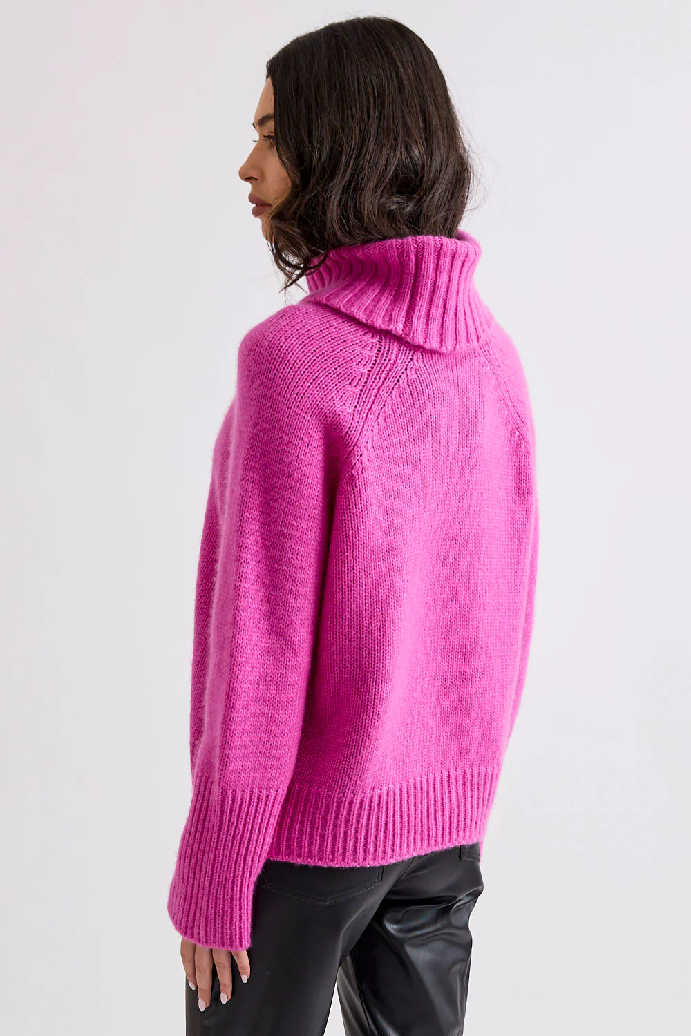 The Mia Fratino Banks Soft Rollneck Sweater in Camelia, part of Mia Fratino’s Ultrasoft Collection offers a serene sense of luxury and an exceptionally plush feel. Designed for a modern, architectural look, it serves as a definitive winter staple that provides both deep insulation and a refined, hazy aesthetic.