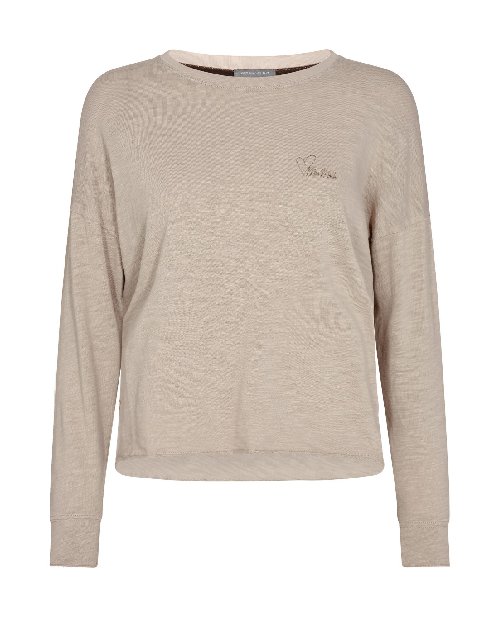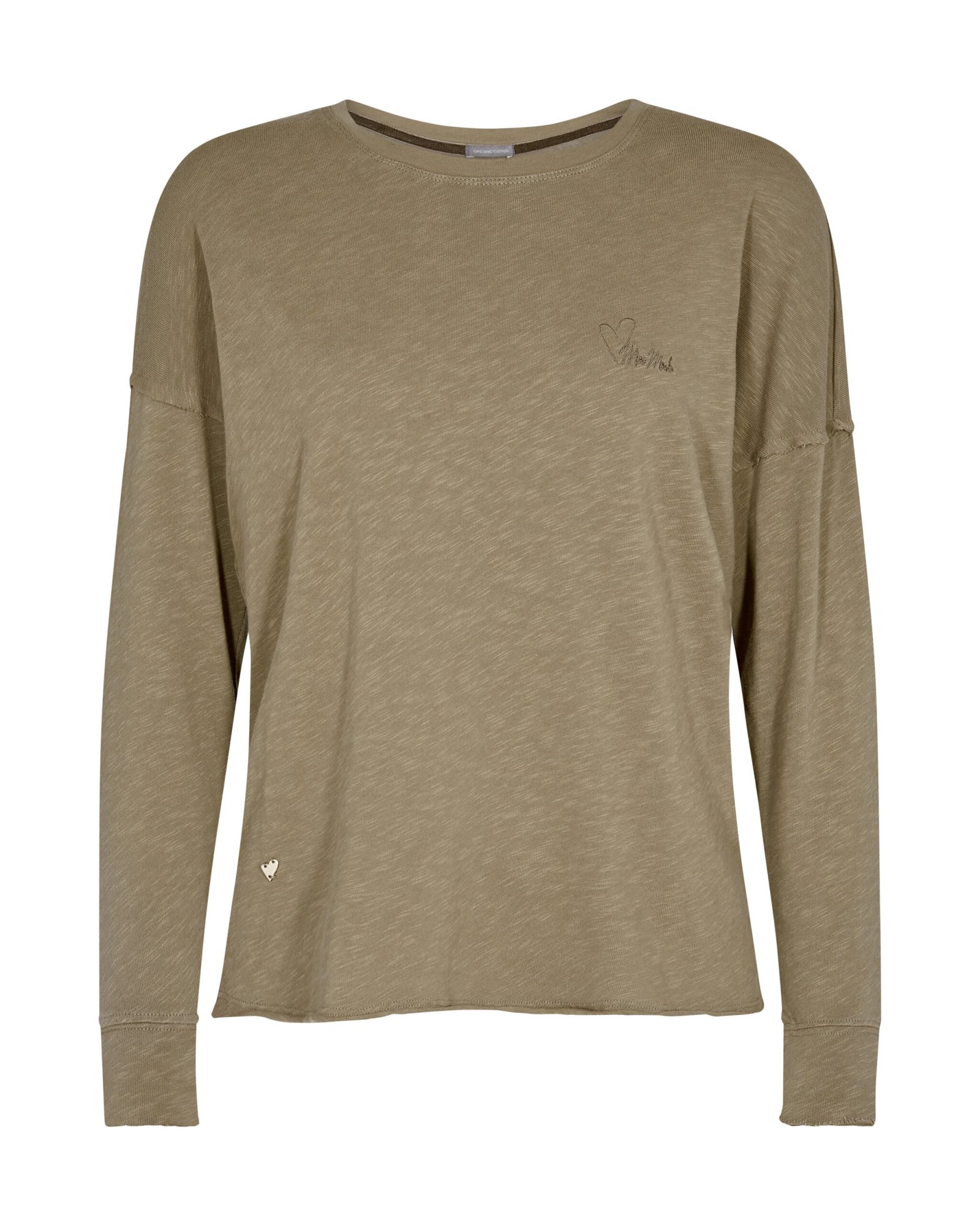 This long sleeve tee is cut in a slightly relaxed fit with a round neckline. The Mos Mosh Glory O-LS Tee is made from super soft slub cotton and finished with drop shoulders and raw edges for an edgy twist. Detailed with heart and Mos Mosh embroidery at left chest. Style with your favorite jeans for off-duty days, this is the perfect basic long sleeve tee for layering