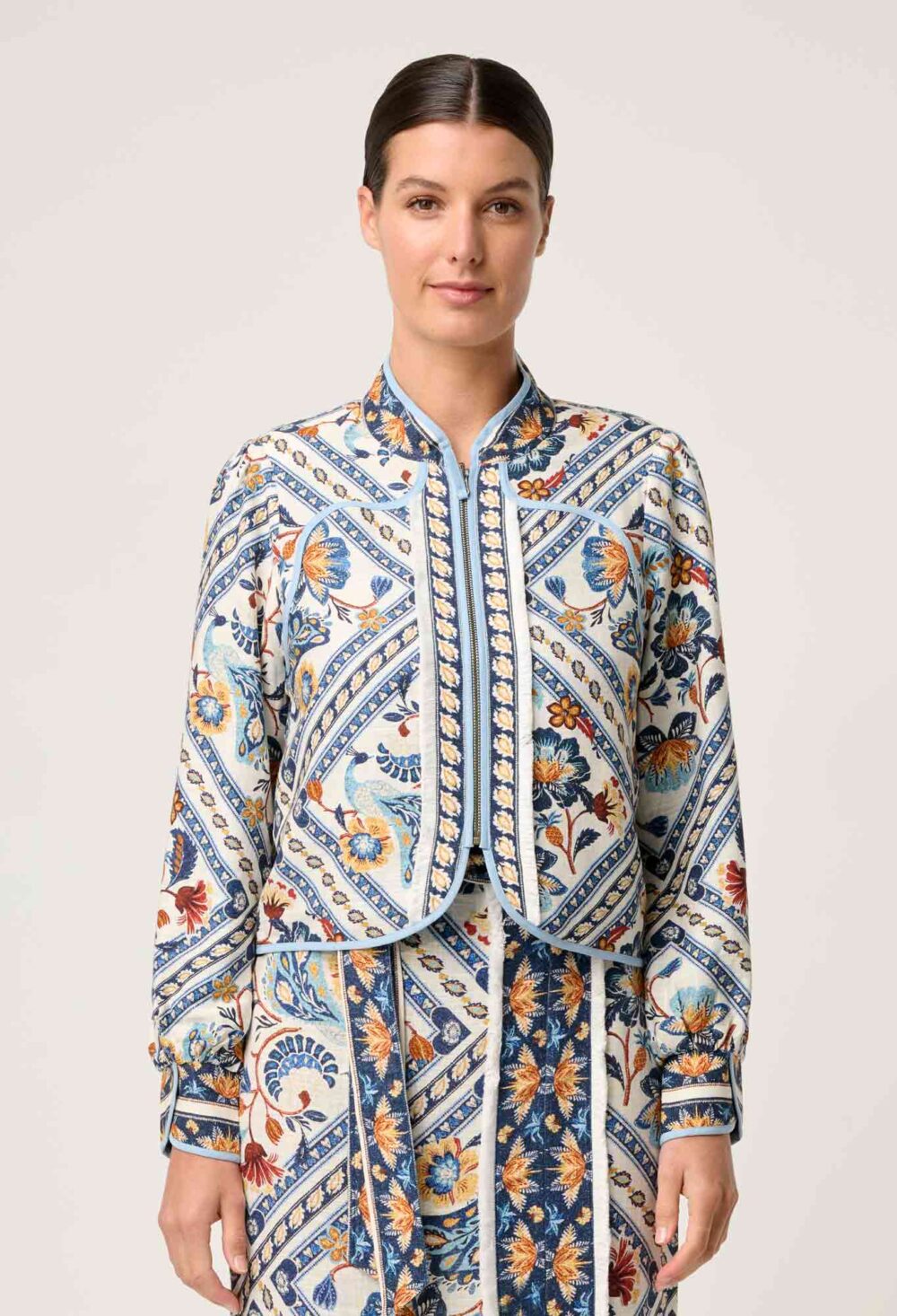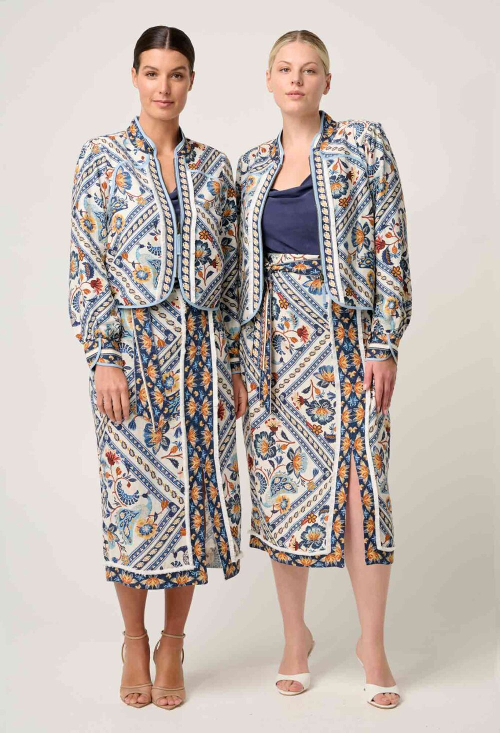 Finished with delicate fringe edging and tailored with a structured silhouette, the Aurora Jacket is ideal for dressing up denim or elevating a matching set. Pair with the Once Was Zenobia Fringe Midi Skirt in the matching Petinos Floros print. Whether worn open or zipped, floral or solid, it’s the piece that will take you seamlessly from brunch to boardwalk.