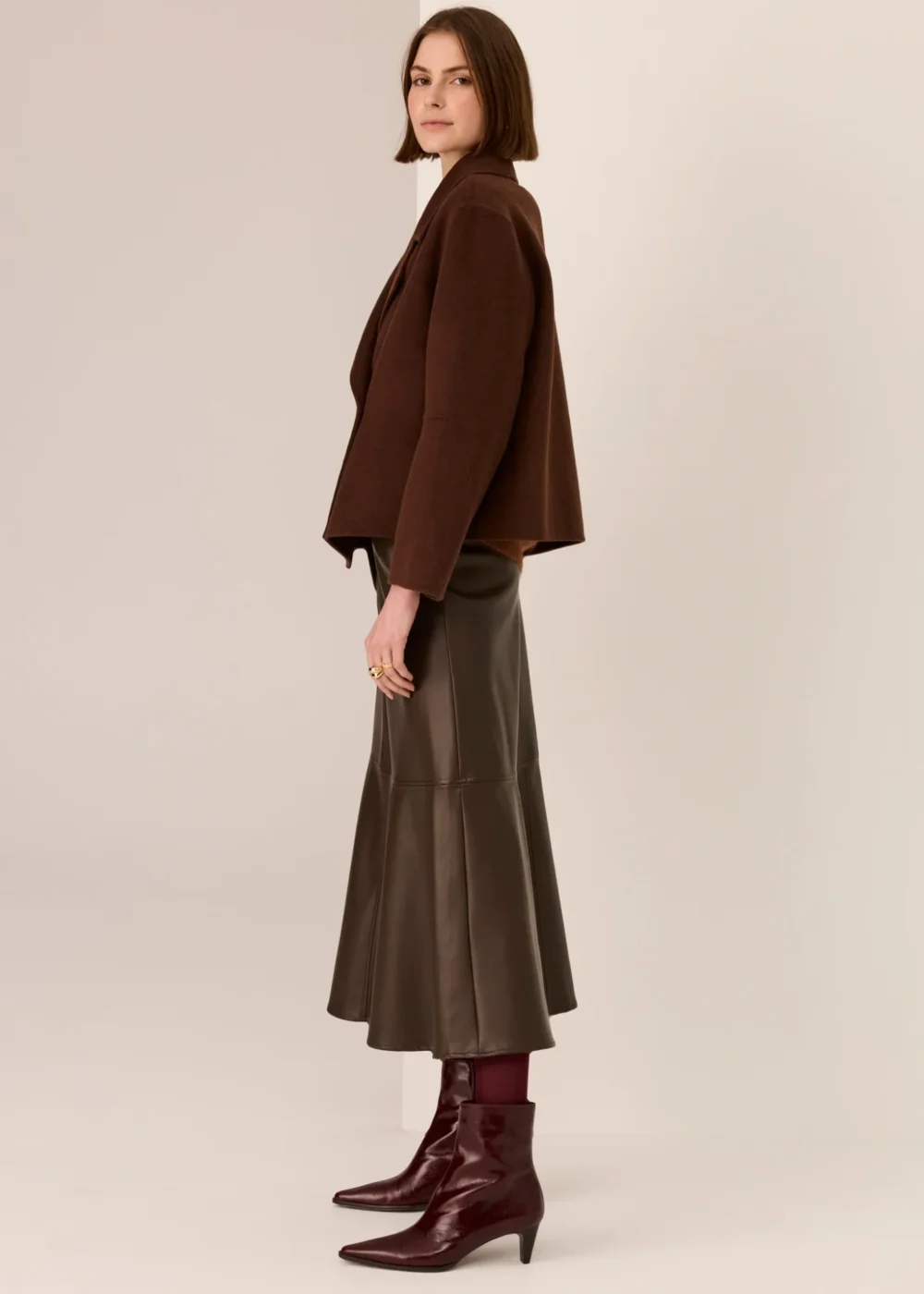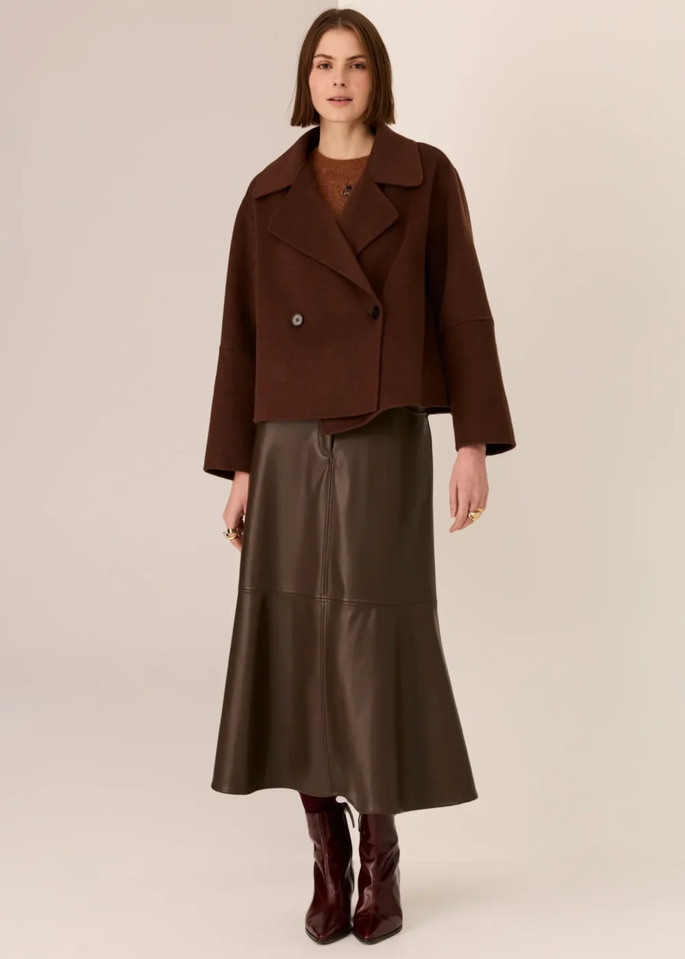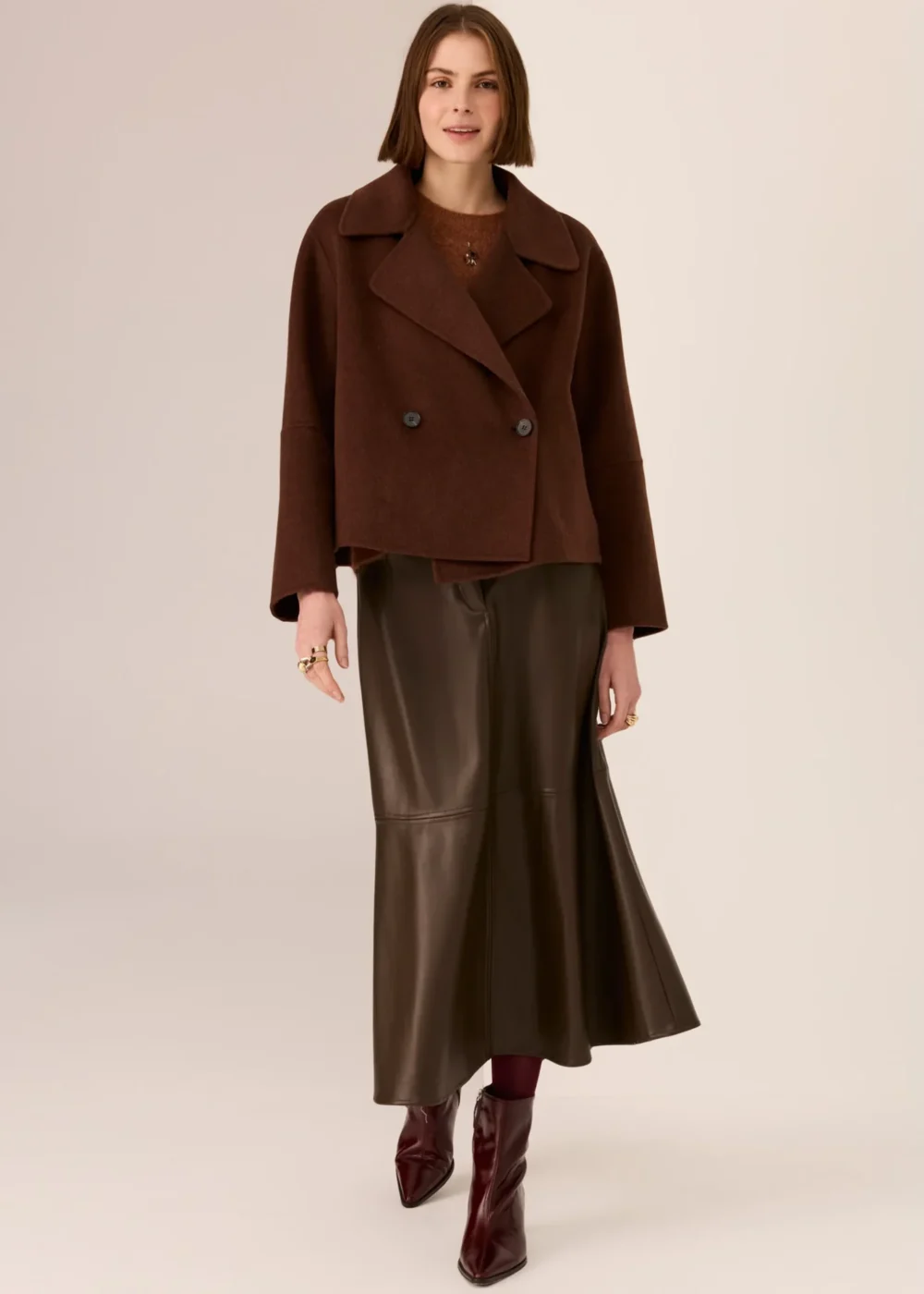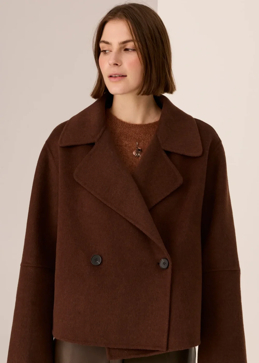 Made from a wool blend, the POL Clothing Cohen Cropped Wool Coat in Walnut features a double breasted fastening in a modern, cropped silhouette.
