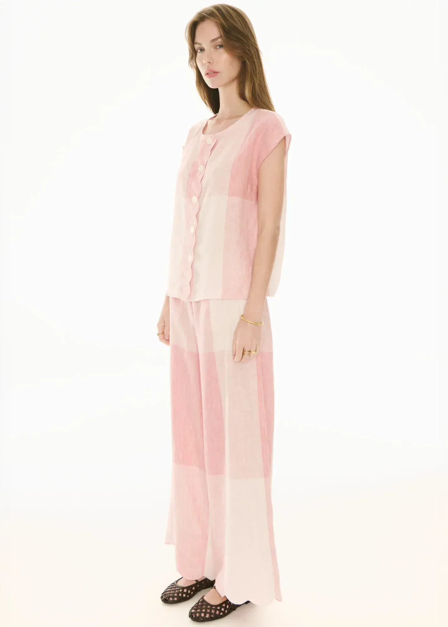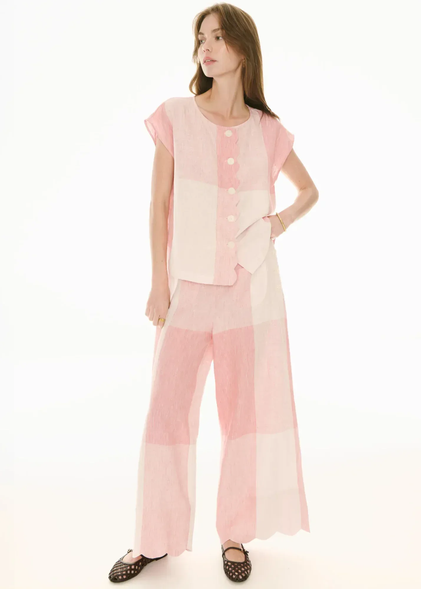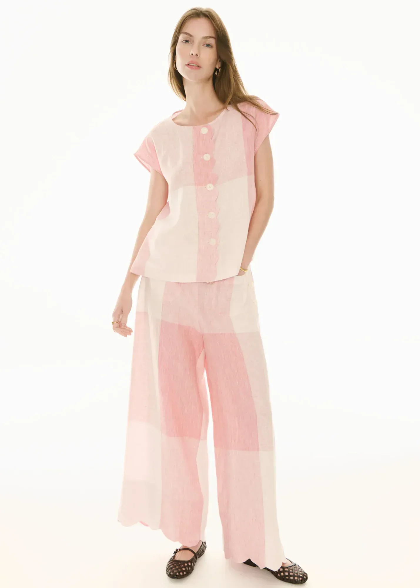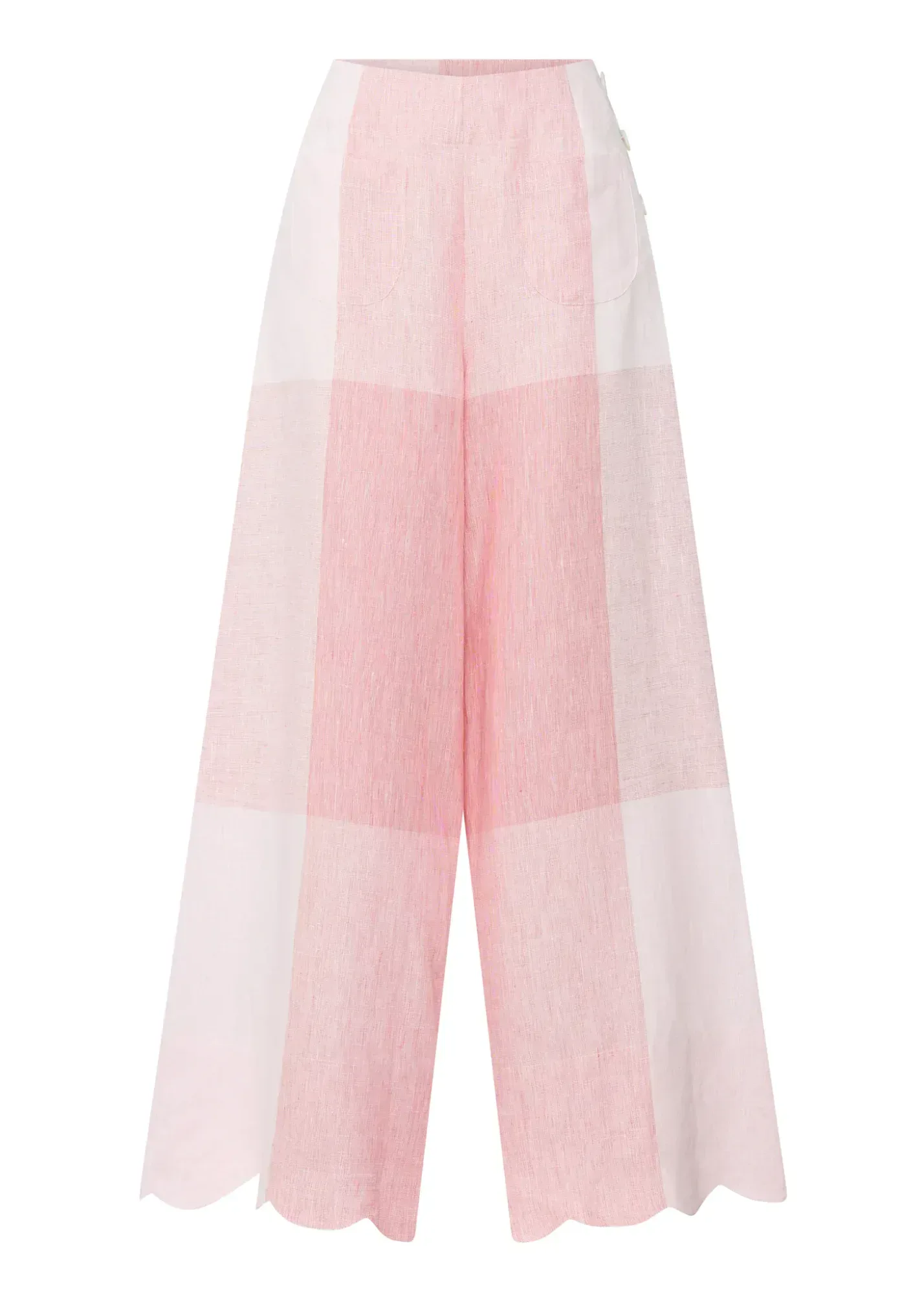 The POL Clothing Safria Scallop Pant in Pink/Red Gingham reimagines one of our favourite designs for the new season, featuring a scalloped edge and a custom oversized gingham weave.
